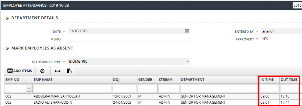 As an initial setup, the The first step is to map each employee with the unique Biometric ID given in your biometric device ,which can be done by entering the ID in the Employee Master--All Employees Report